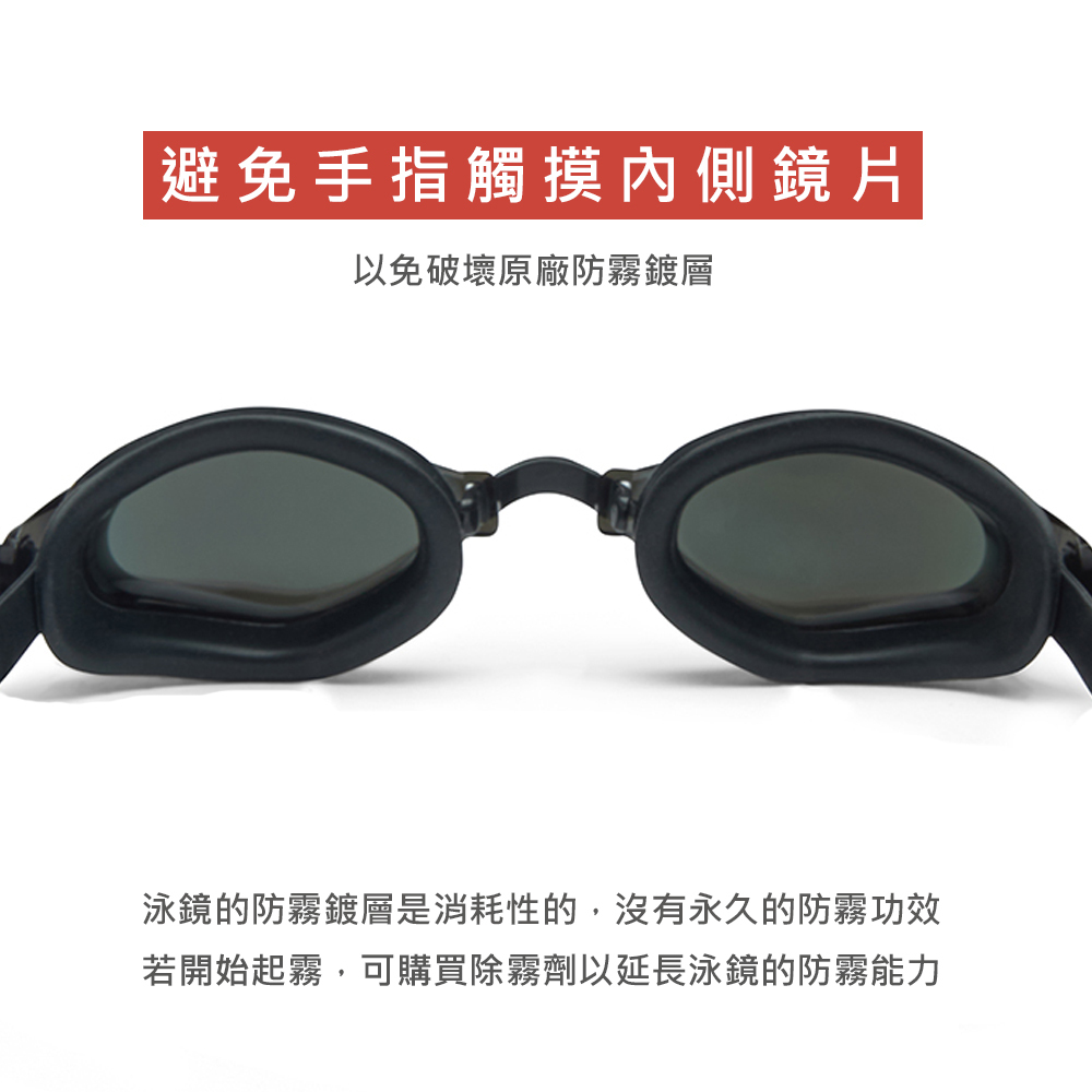 - 請避免使用尖銳物品刮傷泳鏡鏡片