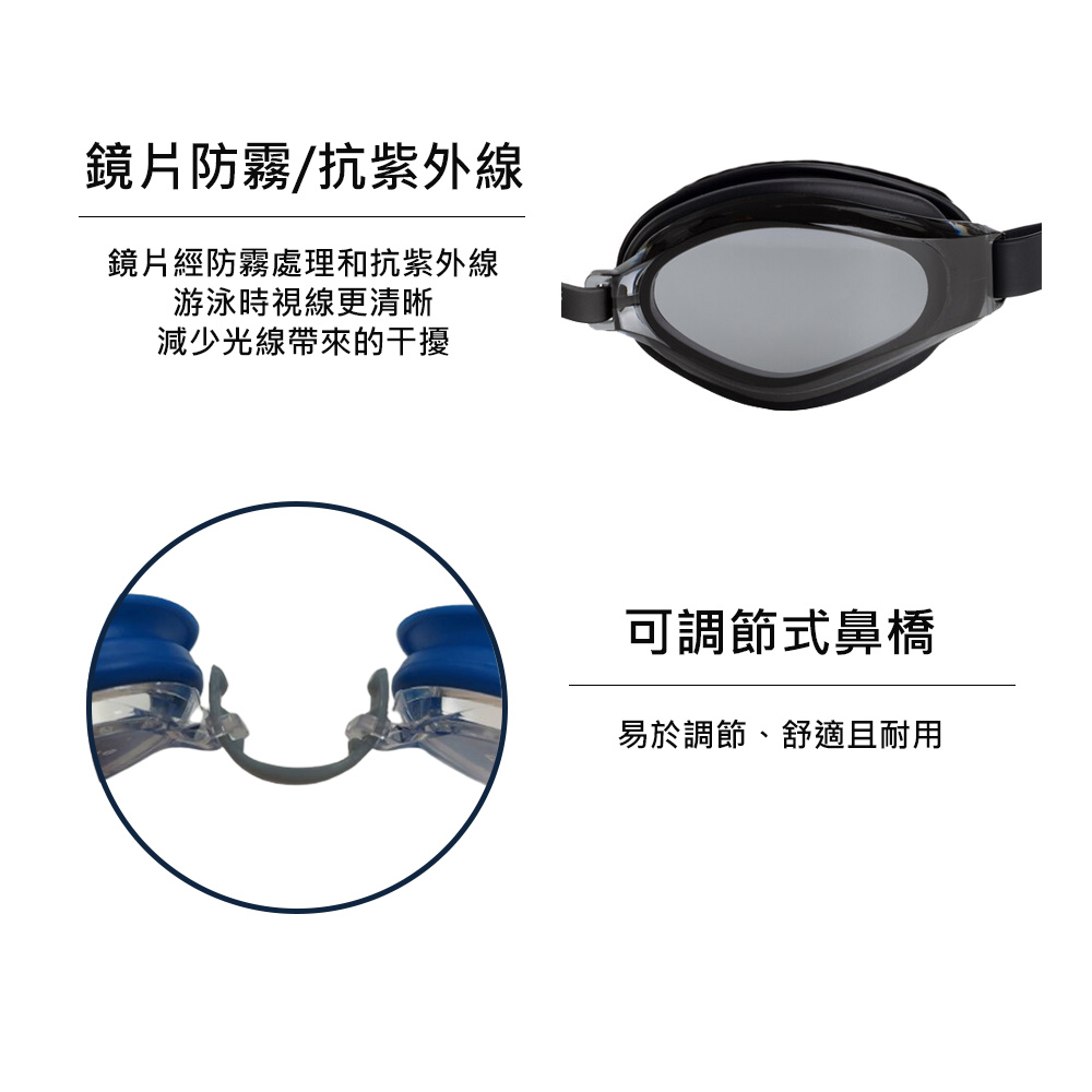 - 請避免使用尖銳物品刮傷泳鏡鏡片