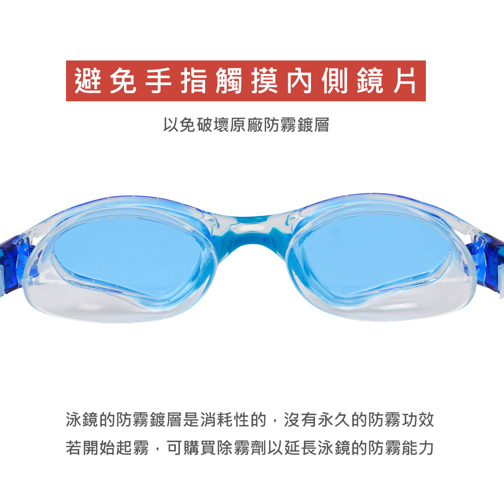 - 請避免使用尖銳物品刮傷泳鏡鏡片