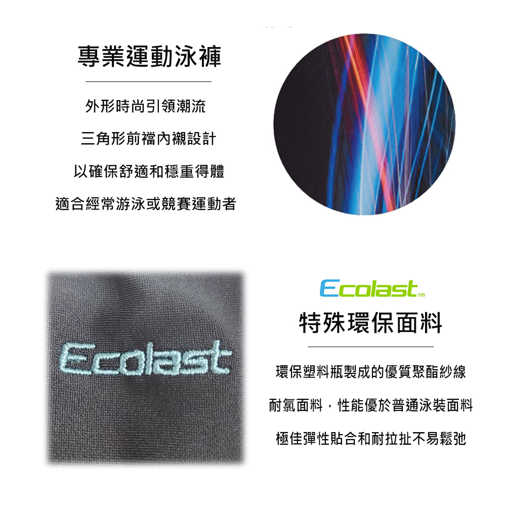 .材質:84%環保聚酯+16%耐氯萊卡(Ecolast材質,特殊環保面料)