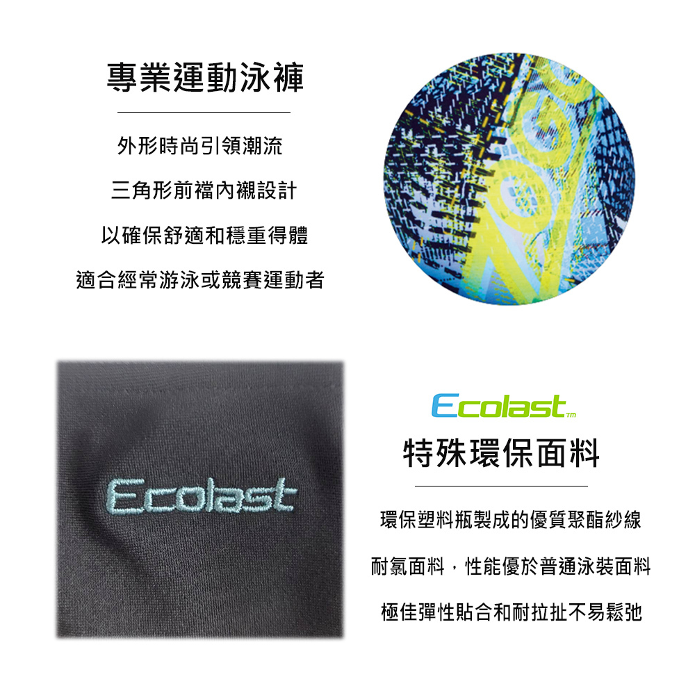 .材質:84%環保聚酯+16%耐氯萊卡(Ecolast材質,特殊環保面料)