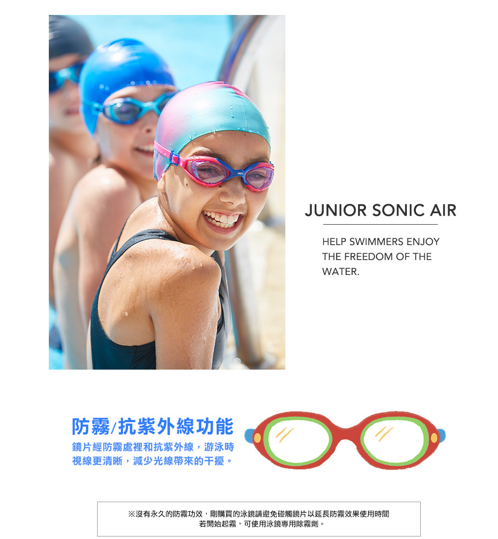 - 請避免使用尖銳物品刮傷泳鏡鏡片