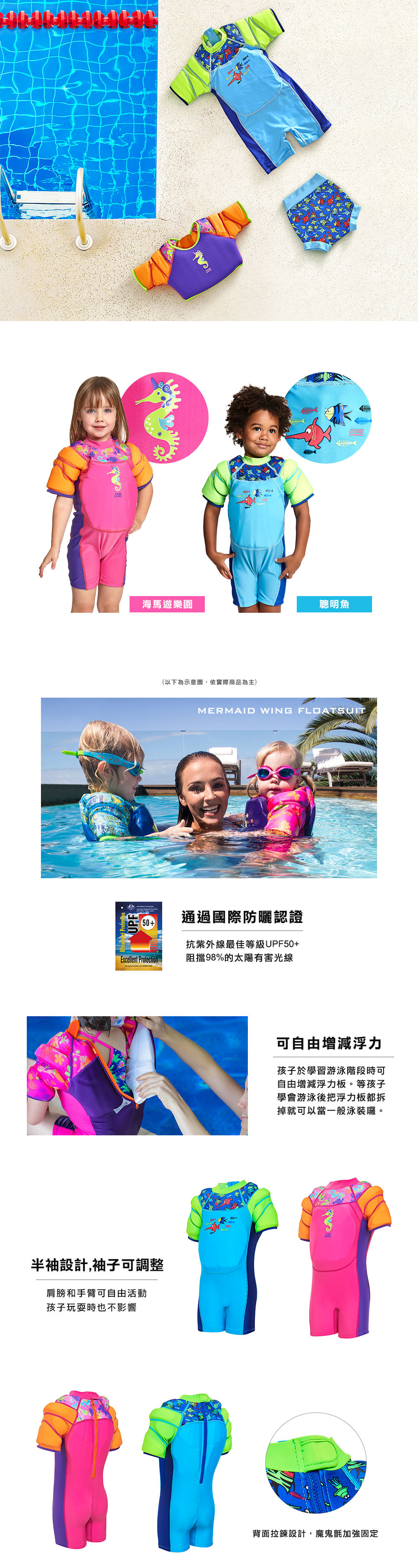 ★嬰幼兒學習游泳時可調整的浮力泳衣