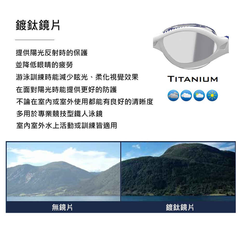 ★鍍鈦鏡片,多用於專業競技型鐵人泳鏡